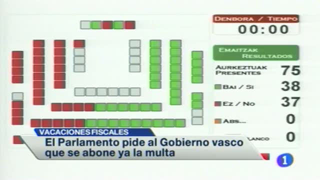 El Parlamento Vasco ha pedido al Gobierno que abone los 30 millones de euros de multa de la vacaciones fiscales vascas.// Una treintena de...