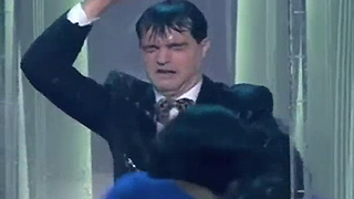 El entonces presentador de '¿Qué apostamos?' interpreta el tema de Ajandro Sanz en Telepasión 98. Una actuación pasada por agua...