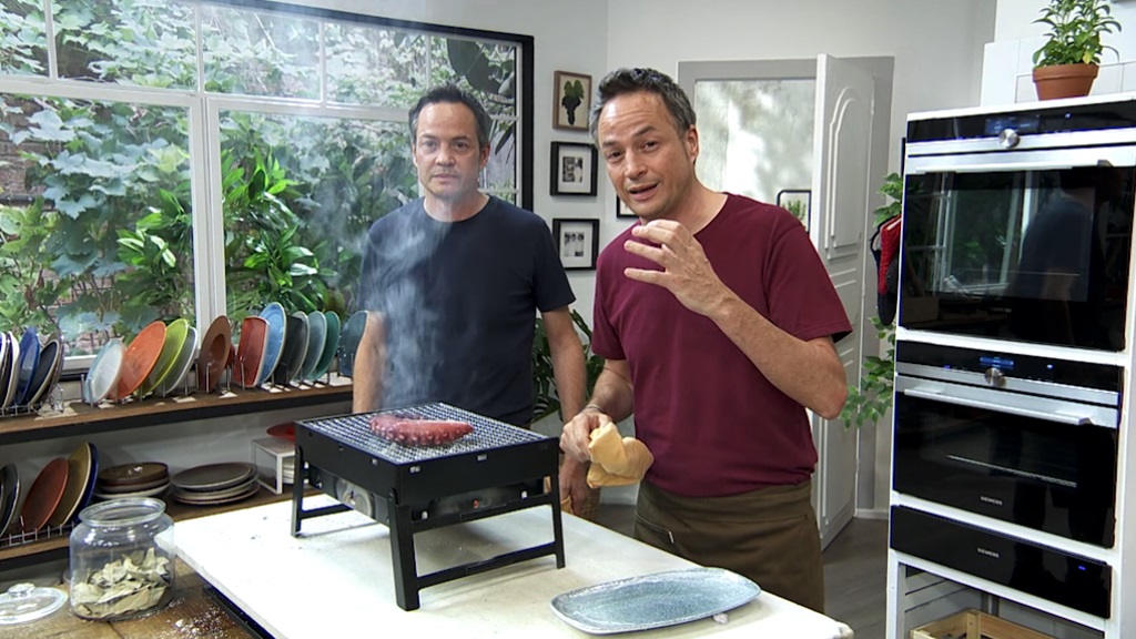 Hoy Javier y Sergio celebran San Juan con un ajoblanco con pulpo a la brasa y una coca de chicharrones con crema de almendras. Además un cocktail...