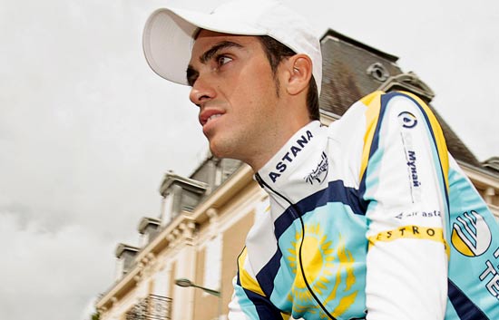 Alberto Contador analiza sus opciones en las etapas alpinas.