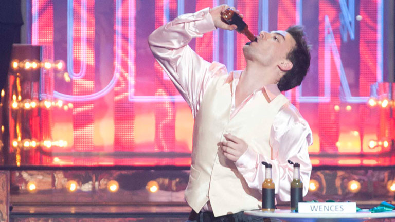 Wences nos canta "Ay, cosita linda" mientras cumple las disparatadas órdenes de la prueba "Sin previo aviso". Entre otras cosas, deberá cantar al...