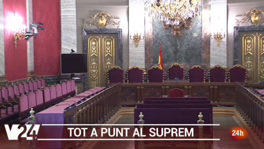 El Suprem prem l'accelerador per tenir tota la logística a punt. Hi ha màxim interès perquè no se'ls escapi cap detall, avui han fet arribar imatges de la sala on se celebrarà la vista oral i hem vist també la sala que s'habilitarà per la premsa. Tot a punt doncs pel dia 12 tot i que les defenses dels acusats han demanat endarrerir 3 setmanes el judici, argumenten que necessiten més temps per preparar-se, una dilació que també pot ser una estratègia de cara al tribunal d'Estrasburg.