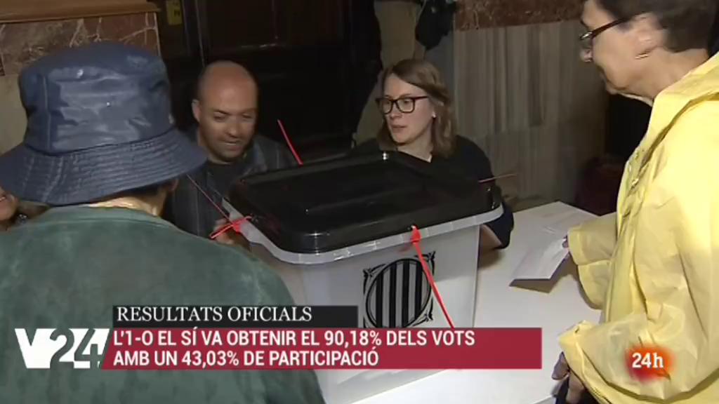 La Generalitat ha fet públics els resultats de la consulta de diumenge...el sí a la independencia es va imposar amb un 90% al NO, que no va arribar ni al 8%. Van votar poc menys de 2 milions 300 mil persones... és a dir, una participació del 43%. Uns resultats però, que segons la comissió d'observadors no són homolgables degut a l'actuació policial.