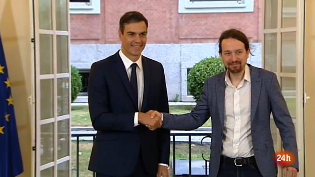 L'acord entre PSOE i UNITS PODEM es tancava de matinada i es formalitzava a primera hora del matí amb aquesta imatge. Un pacte que va més enllà dels pressupostos i que sona a acord de legislatura, perquè no nomès hi han números, sinó que es parla d'un model de societat, amb accent feminista (s'inclou un pla contra la violència de genere amb reforma del codi penal), també la reforma de la llei electoral i altres canvis del codi penal...Un acord amb el que el Govern vol consolidar la legislatura i allunya el fantasme d'eleccions anticipades. Per la oposició, pp i ciutadans, no surten els números i diuen que es generarà més dèficit.