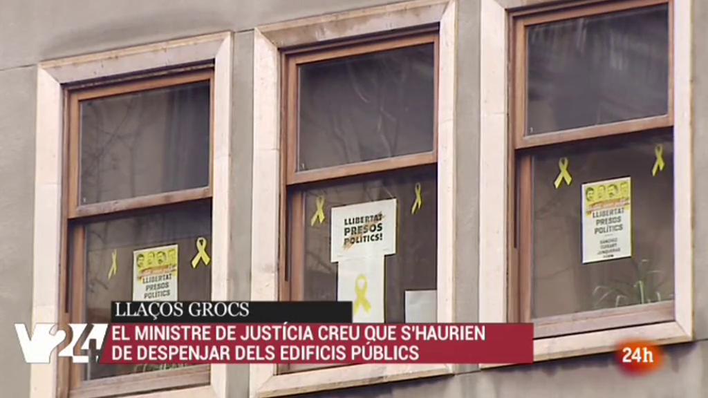 Doncs justament el ministre de justícia es partidari de retirar dels edificis públics els llaços grocs que s'exhibeixen com a símbol a favor de la llibertat dels dirigents polítics independentistes empresonats. Rafael Catalá creu que no s'haurien de penjar en edificis oficials perquè diu son institucions que representen a tots els ciutadans i no només a una part.