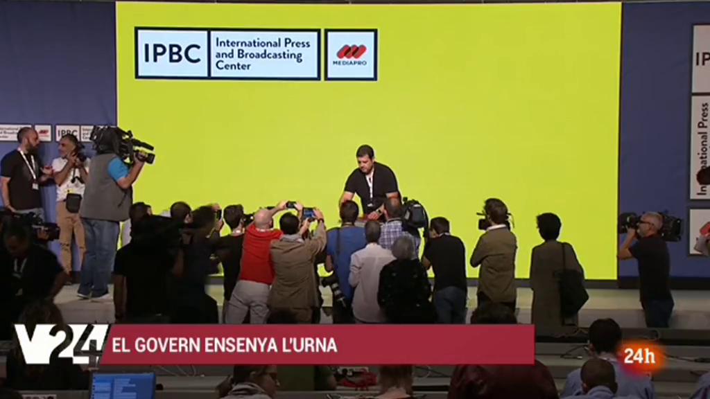 Era una de les grans incògnites per diumenge...i avui la Generalitat l'ha revelat. Les urnes, de plàstic i logotipades amb l'escut de la Generalitat que s'utilitzaran en el referendum de l'1 d'octubre suspès pel Constitucional.. El Govern català tira pel dret i habilita més de 2mil 300 col.legis electorals...però deixa molts dubtes sense resoldre.