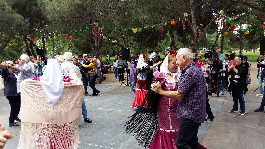Chulapos y chulapas bailando un chotis