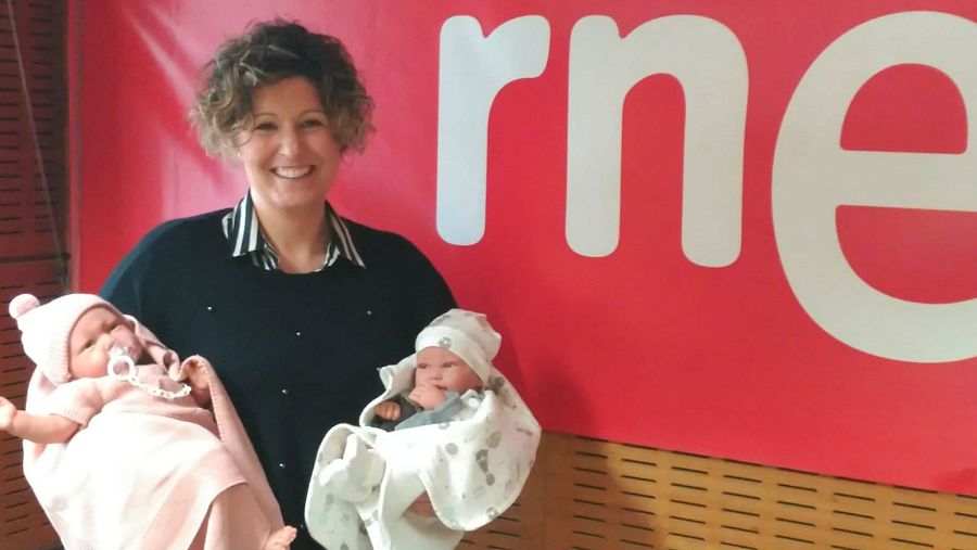 María Moltó, en Rne Alicante con muñecas de la juguetera 'Antonio Juan'