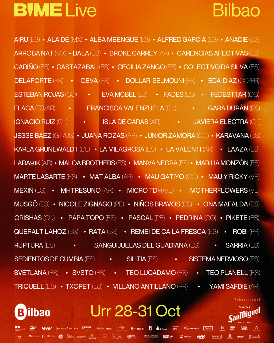 BIME se celebrará en Bilbao del 28 al 31 de octubre, y cerrará su decimotercera edición con una gran jornada al aire libre el día 31 con las actuaciones de Villano Antillano (PR), Delaporte (ES), Silitia (ES), Flaca (AR/ES) y Ruptura (ES). Una cita abierta que forma parte de la programación de BIME Live.