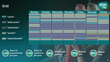 Channel differentiated from TVE Internacional by basing its content on the best fiction (80% Star vs. 9% TVE).