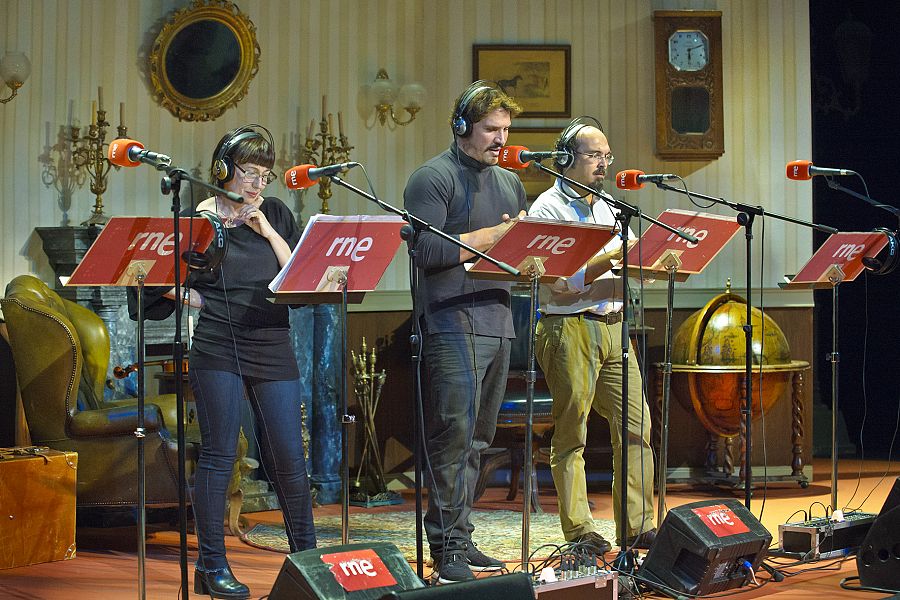 El equipo de Ficción Sonora de RNE estrenó ayer su nuevo trabajo, ‘Sherlock Holmes: el signo de los cuatro’, una adaptación de la novela de Arthur Conan Doyle que recrea las andanzas del mítico detective en un relato lleno de suspense, crímenes, intrincadas investigaciones y brillantes deducciones. Sergio Peris-Mencheta, en el papel de Sherlock, Inma Nieto en el de Mary y Juan Suárez como Watson protagonizaron esta ficción este miércoles 11 de noviembre en La Casa Encendida Fundación Montemadrid. La obra también pudo seguirse en directo en Radio 3 y la web de RTVE.