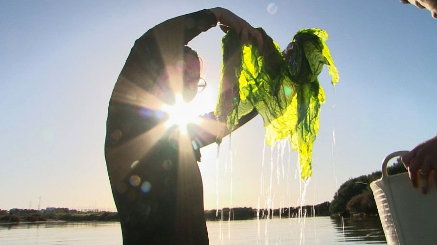 En los esteros de la bahía de Cádiz crecen “lechugas” de mar y “tallarines” en la roca. En estos pequeños lagos construidos en torno a las salinas se recoge uno de los ingredientes más cotizados de la gastronomía actual: el alga. Lo que hace diez años nadie quería, ahora es un motor económico para la zona. Consuelo es pionera en su tierra. Recolecta, produce y exporta algas desde Chiclana a Bélgica, Alemania o Japón. El ochenta por ciento de sus clientes son restaurantes a los que vende su tesoro por 30 euros el kilo. Un día bueno puede llenar el capacho con 60 kilos mientras el lodo la engulle metida en sus botas de agua.