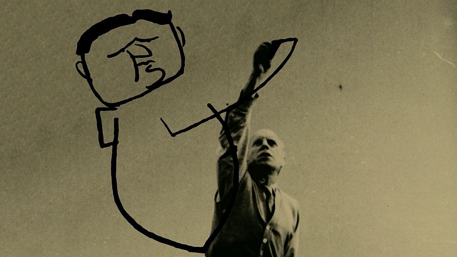 Josep Renau dibujando una caricatura rtve