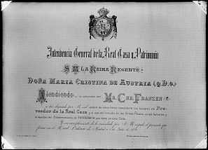 Reproducción del diploma de nombramiento de Christian Franzen como proveedor de la Casa Real.