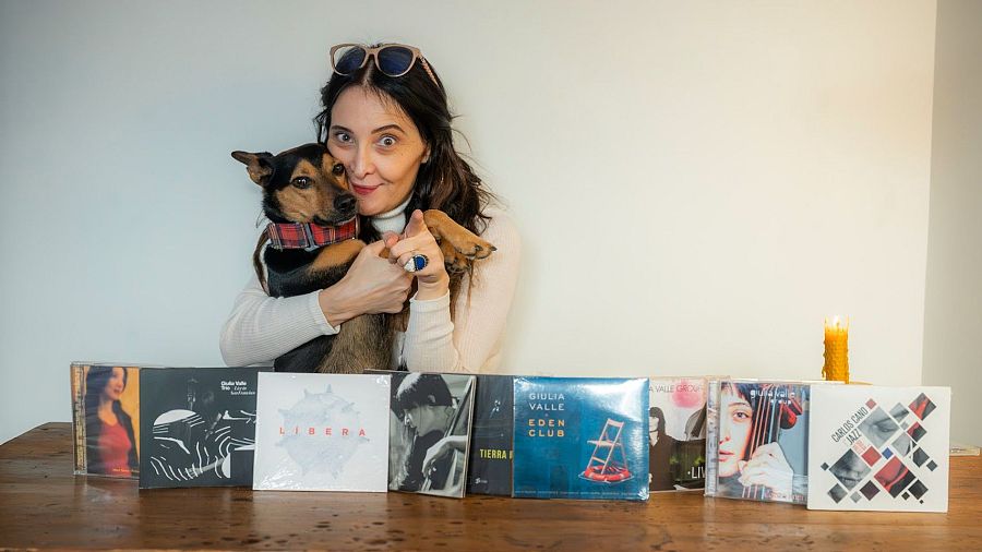 Giulia Valle sosté el seu gos, mostrant-nos els seus discs JOSEP ECHABURU JOSEP ECHABURU