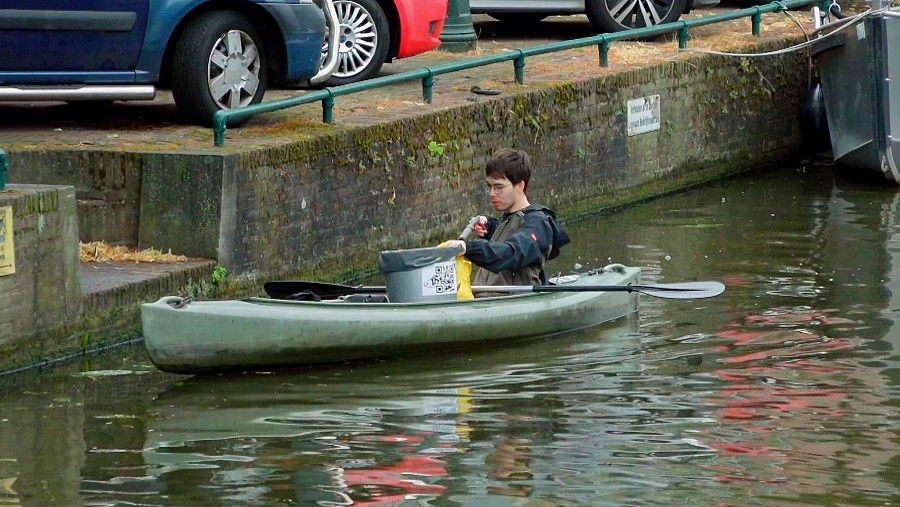 Voluntaris de Leiden prenent mostres de la fauna aquàtica dels canals urbans