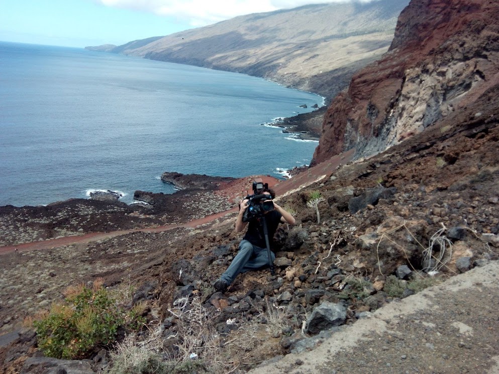 Las abundantes brumas nos lo impiden, pero Juanjo está dispuesto a todo para ver El Hierro desde lo alto y más sabiendo que, al final del nuestra estancia en la isla le espera una magnífico atardecer en la playa de Tacorón.