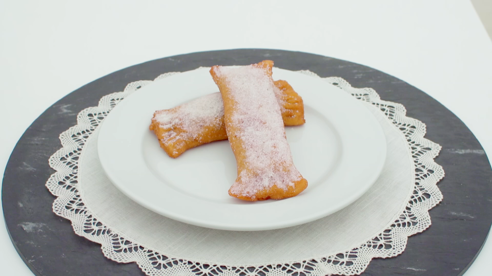 8. Metemos las casadielles en un plato en que hemos puesto abundante azúcar para que queden “rebozadas” y listas para servir.