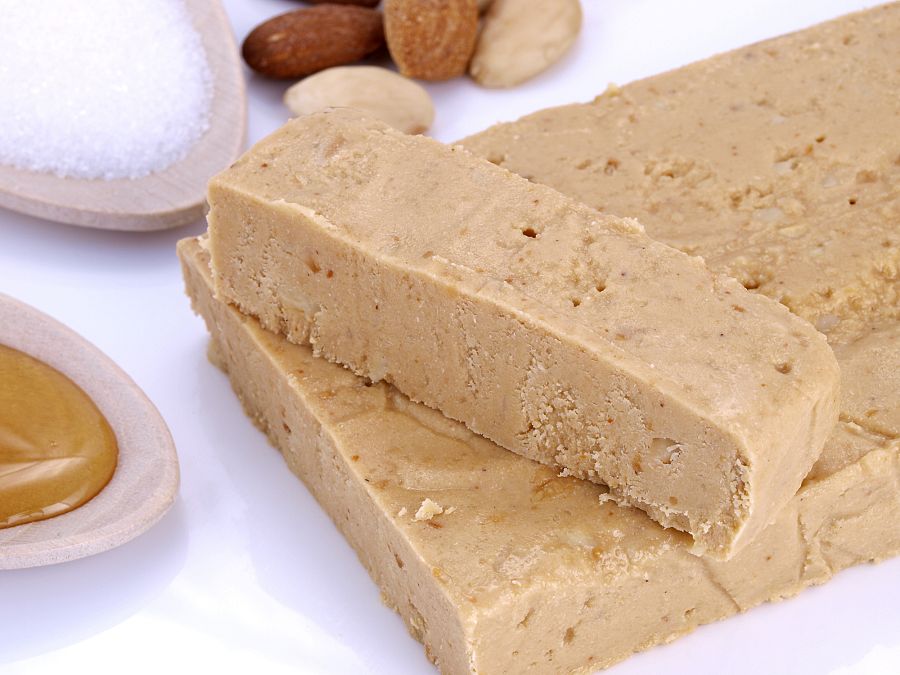 - Turrón de Jijona o blando: se elabora con miel y almendras molidas. Lo que lo hace distinto es que su textura es más ligera.
