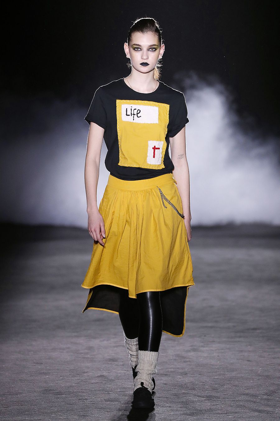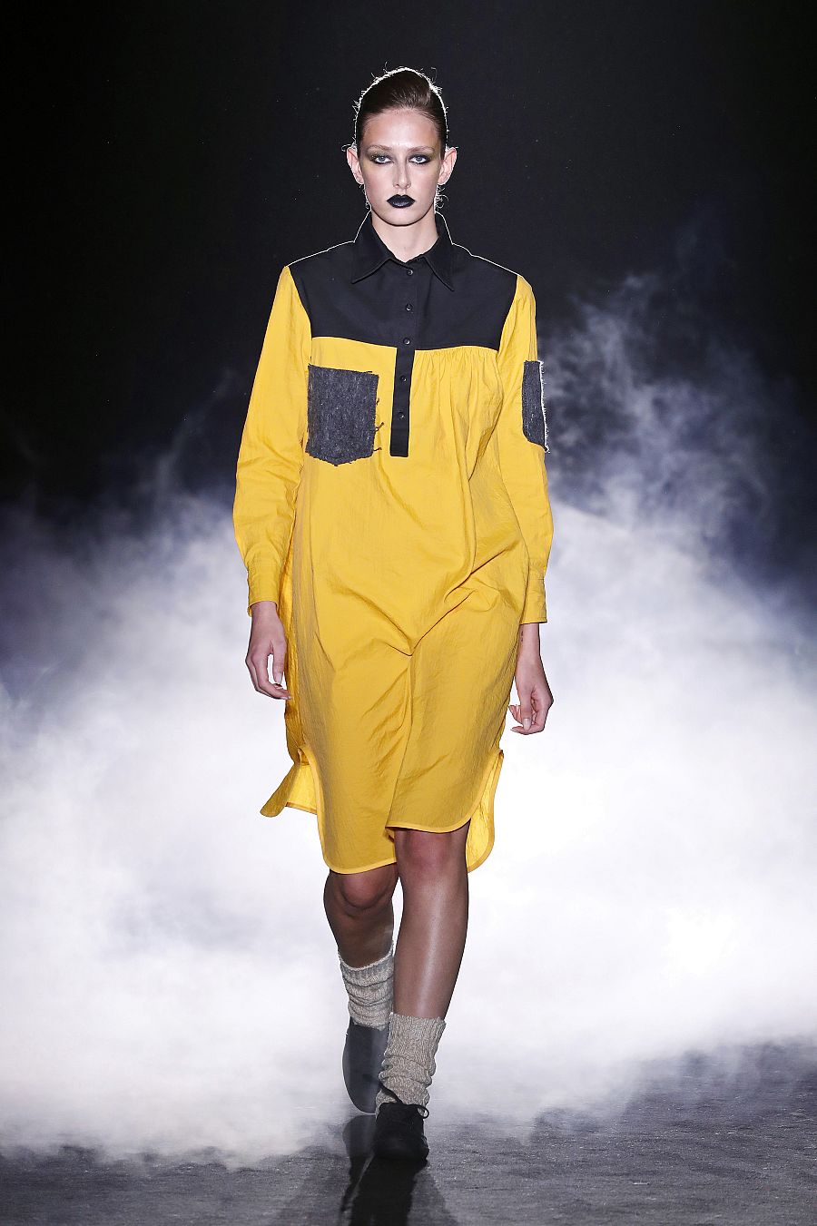 Podemos hacer variaciones de tejido, color, si nos lo piden, pero estas son únicas”, dice y presume de las camisetas, su pieza estrella, que van pintadas, con mimo, a mano, y llevan un grafismo muy especial, tanto por la caligrafía como por el color. “Es una colección muy cañera y casi todas las prendas parten de un patrón masculino pero están pensadas para que la mujer las haga suyas pero no por imposición, que las haga suyas con su actitud”, cuenta. El tono cúrcuma, potente sobre la oscura pasarela, se adueña de la paleta de color en la que no faltan poderosos blancos rotos y los rebeldes negros. “Todo está hecho en Barcelona, y todo es artesanal. ¡Es una alta costura para del día a día!”, dice. Y razón no le falta.