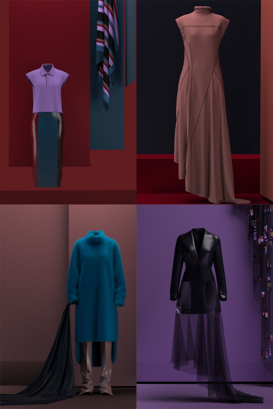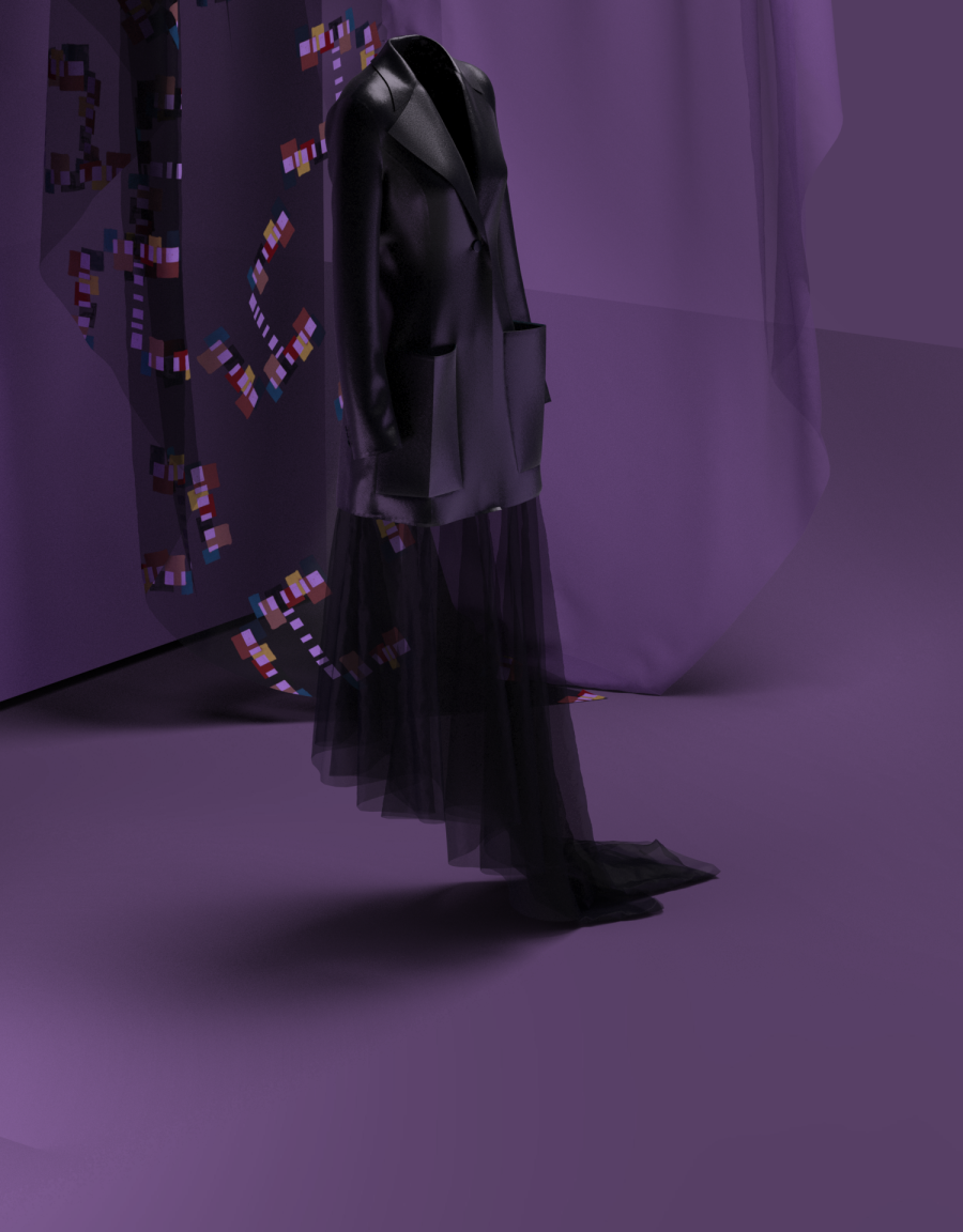 "Lanzo una colección de mujer en formato virtual, desarrollada íntegramente en procesos y formatos digitales: desde la parte creativa, pasando por el patronaje, costura, sesión de fotos formato lookbook y teaser campaign. Todo con un ordenador y una tableta gráfica (aunque he tenido cerca tejidos para tocar, paleta de color etc). Las prendas, escenas y fotos están hechas íntegramente con Clo3D y los prints, moodboard y diseño gráfico con otra herramienta digital. Respecto a la parte estética y de concepto se define por una paleta de color y materiales que va desde la sobriedad del paño hasta prendas mucho más eclécticas con cuero de colores intensos y organzas estampadas. Hay un poco de cada cosa que adoro: Worth, Balenciaga, mis 90´s, el grunge que nunca consigo ocultar, mucha esencia española y los pañuelos en los hombros como los llevaba mi abuela".