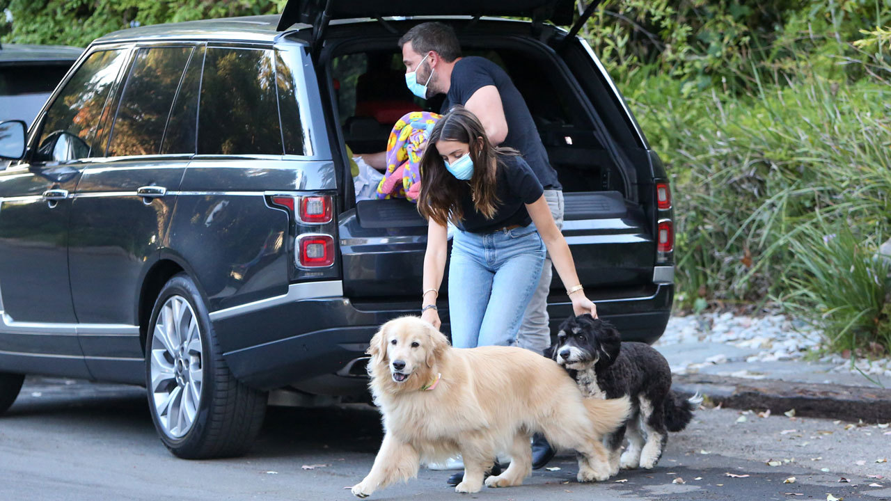 Ana de Armas y Ben Affleck paseando con sus perros en Los Ángeles