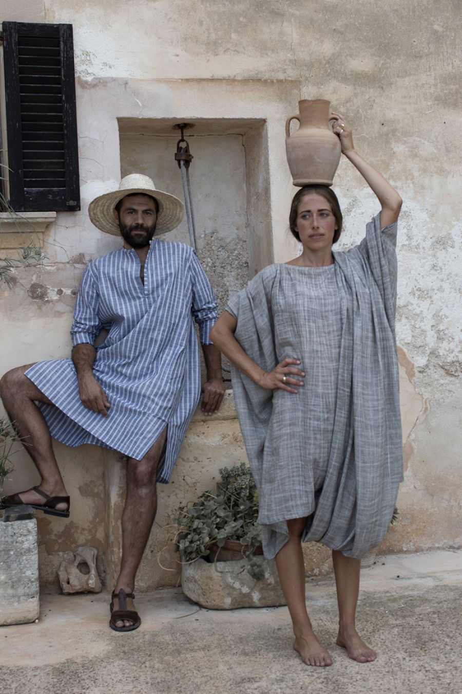 A partir del patrón de la camisa mallorquina desarrolla otras prendas, como la túnica, la toga.. . Todas conectadas con el espíritu Mediterráneo y sus culturas, algunas tan ligadas históricamente a Mallorca. Y siempre con una paleta de tonos naturales para reforzar esa idea de estar en conexión con la naturaleza, la tierra, las tradiciones e incluso los colores de la isla.
