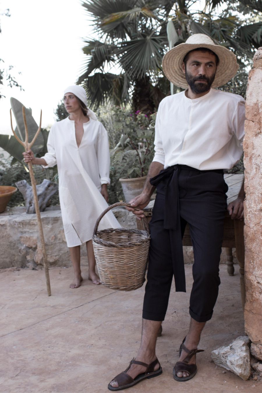 Adios a la pasarela, a los focos y las luces. Adiós al front row de celebridades aferradas al móvil, adiós al exceso, el derroche y lo banal. Aquello ya pasó, al menos para Sebastián, el payés. "Rebuscando en el arcón de madera familiar encontré la camisa mallorquina de mis bisabuelas, una pieza clave en la cultura mallorquina que está en desuso. Y ella es el eje ahora de mi colección. Lleva cuello de tirilla, mucho fuelle atrás, para permitir la libertad de movimiento, cortes laterales para tener acceso a los bolsillos y un algodón que estoy rescatando de diferentes familias, un algodón orgánico, 100 % natural, que no está tratado y no se parece a nada de lo que vemos hoy".