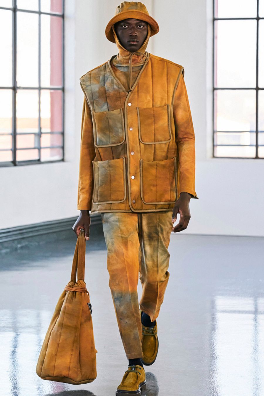 La silueta es tranquila, relajada, ideada para "gente moderna con un toque contemporáneo". Catalán pone en valor los materiales utilizados en esta ocasión, que destacan por su textura aterciopelada. Destaca la ausencia de estampado que en esta ocasión se sustituye por un degradé de tonos cálidos con efecto lavado o desteñido. Una propuesta madura, potente y vibrante que pretende ser "juvenil, irreverente y adaptable a la nueva forma de consumir".