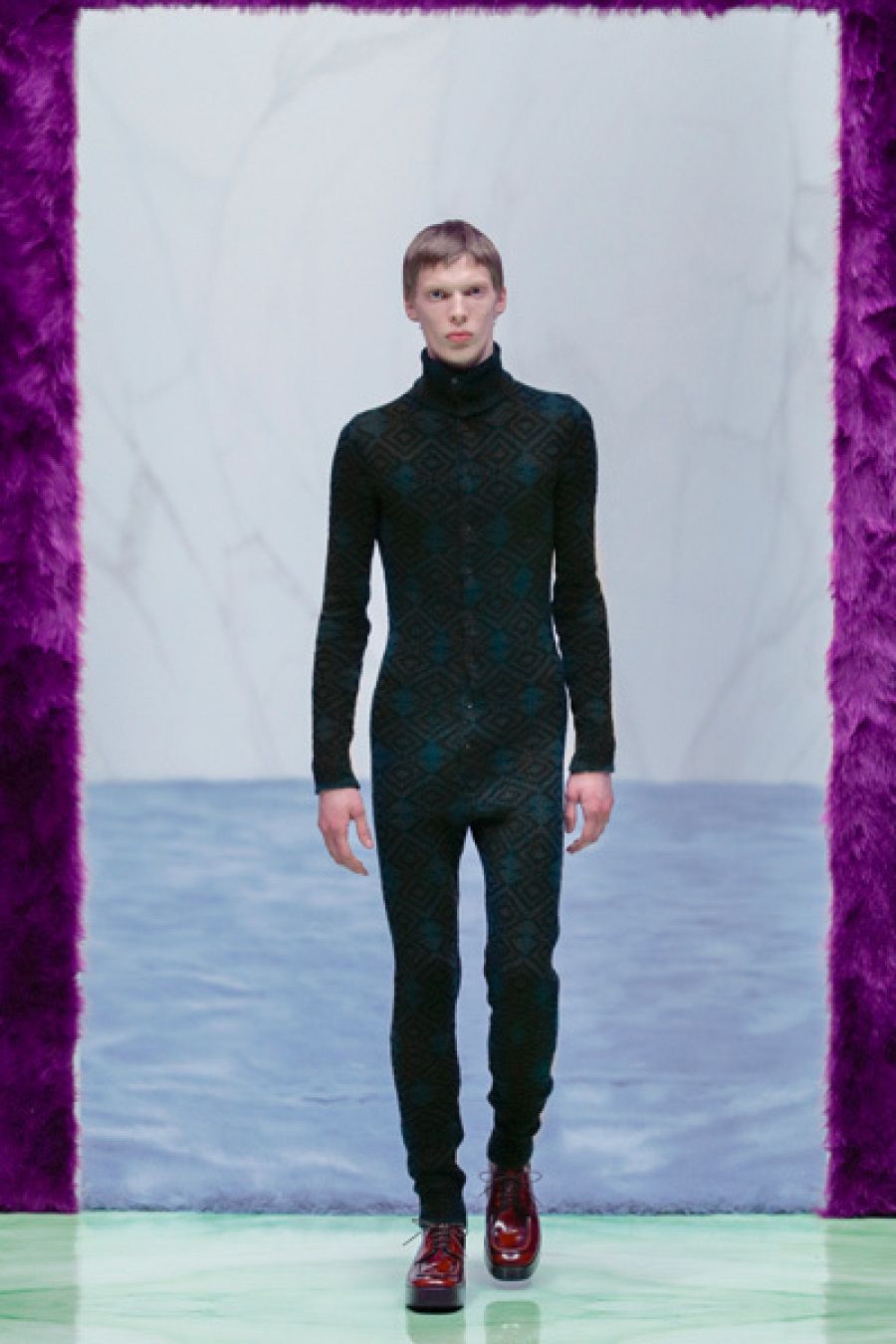 Pero no se trata de volver a lo que se hizo en los 90 del siglo XX. Ahora se tienda a reducir los ornamentos y los estampados en prendas aparentemente sencillas que, sin embargo, llevan detalles maxi: cuellos, solapas, botones... En ese empeño de reconquistar el minimalismo se apuesta por tonos lisos, desde los clásicos negros a los malva tranquilos. Aunque luego, para contrastar vemos vibrantes morados y amarillos urbanos. Los tejidos varían desde los tradicionales y nobles a los que salen de los laboratorios. La mezcla de texturas resulta fabulosa y conforma potentes looks. Un ejemplo: abrigo de lana, jersey de mohair, cuello de nylon enrollado, calzones largos y guantes de cuero en tono turquesa. Se apuesta por el total look en negro aunque roto por los golpes de color de los complementos o de una prenda exterior. En el desfile hemos visto al modelo español Jaume Martí, uno de los nuevos rostros de la moda que más fuerte está pegando.