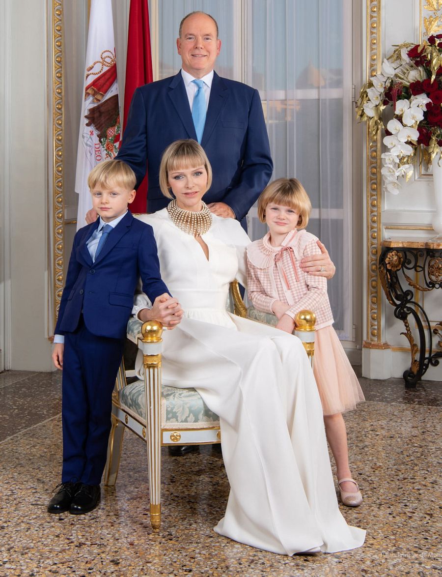 Posado de Alberto y Charlène de Mónaco con sus hijos.
