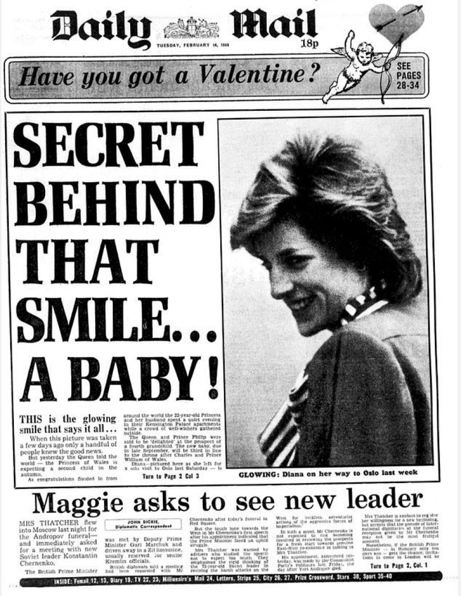 Así contaba el Daily Mail que Diana estaba embarazada de su segundo hijo, fue un 14 de febero de 1984. RTVE