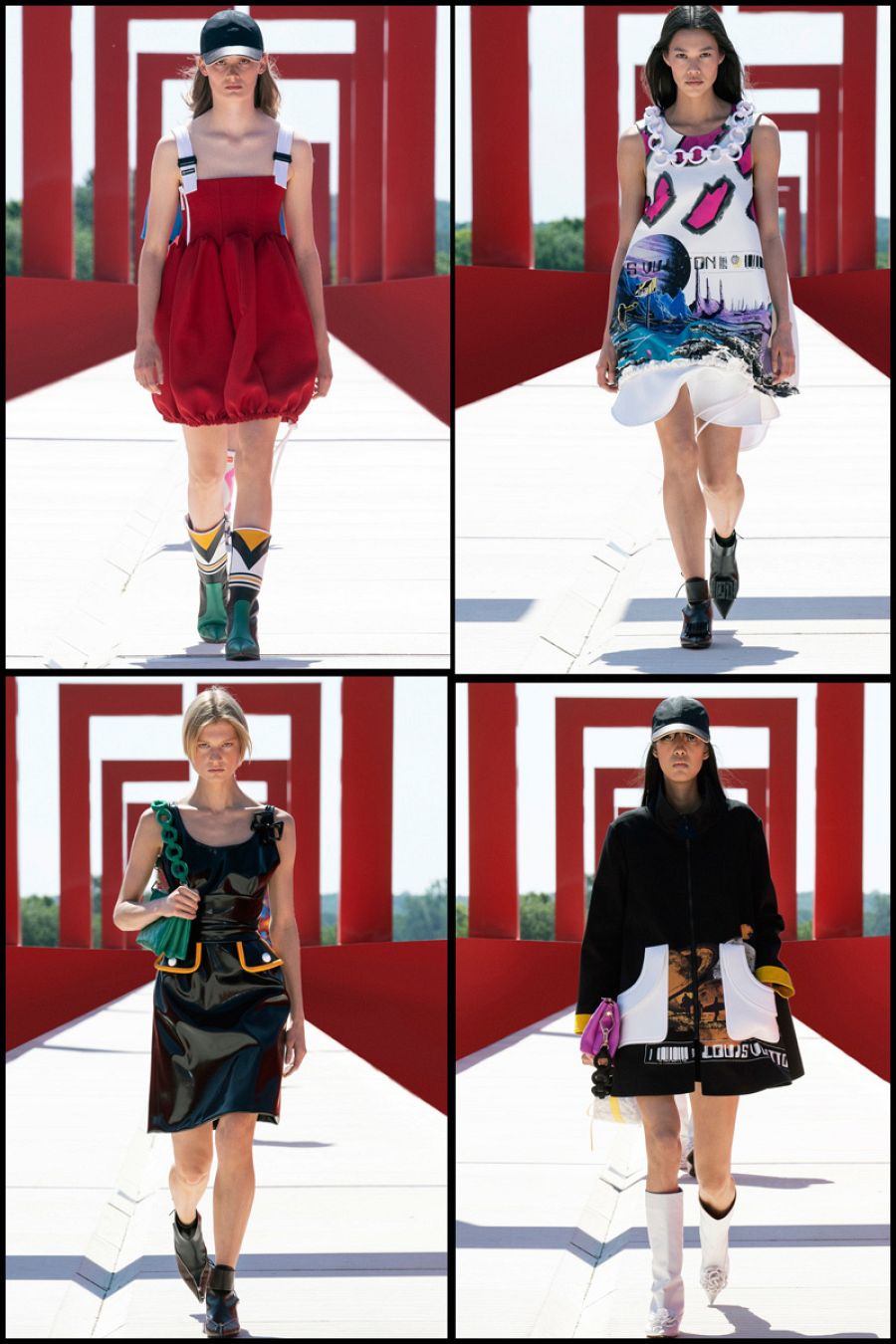La nueva colección presentada en formato desfile pertenece a la línea crucero para 2022, y mezcla poesía y artesanía en piezas que juegan con las geometrías más rabiosas, los volúmenes más sorprendentes y las combinaciones de color más excitantes. El desfile se ha celebrado en la 'pasarela' gigante del Axe Majeur que el escultor israelí Dani Karavan construyó a las afueras de París. ¿Y esto es importante? Sí, porque importa el conjunto, la experiencia visual para el espectador. Todo suma y todo ayuda a reforzar la imagen de marca.