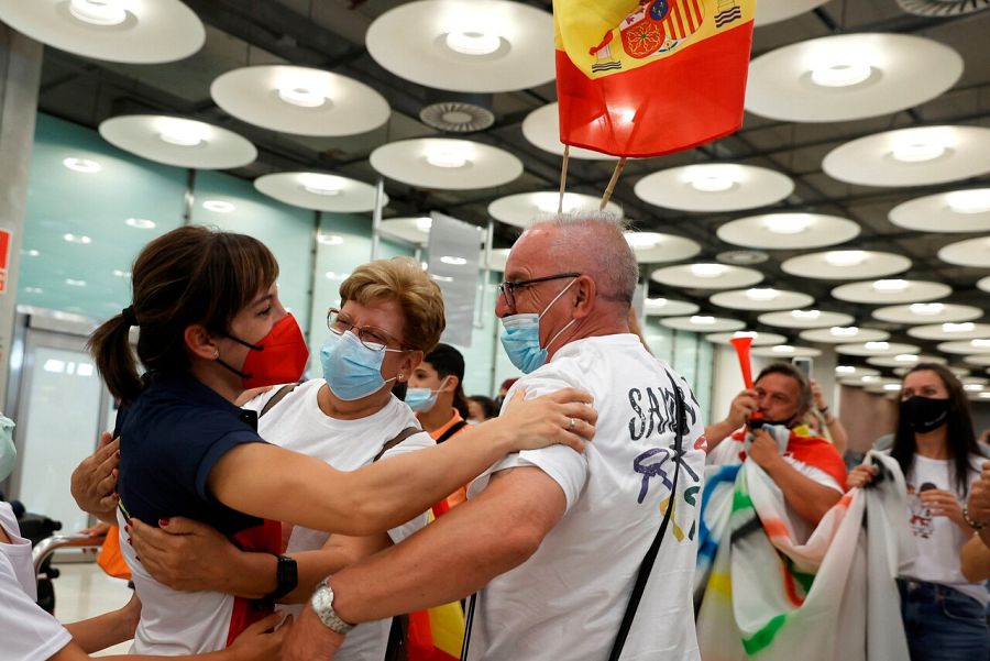 Sandra Sánchez se abraza a sus padres nada más llevar a España. EFE