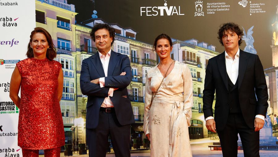 El jurado de MasterChef (Samantha Vallejo-Nágera, Jorsi Cruz y Pepe Rodriguez) y Macarena Rey, CEO de Shine Iberia, en la gala de clausura del Festival de Vitroria Sergio R. Moreno