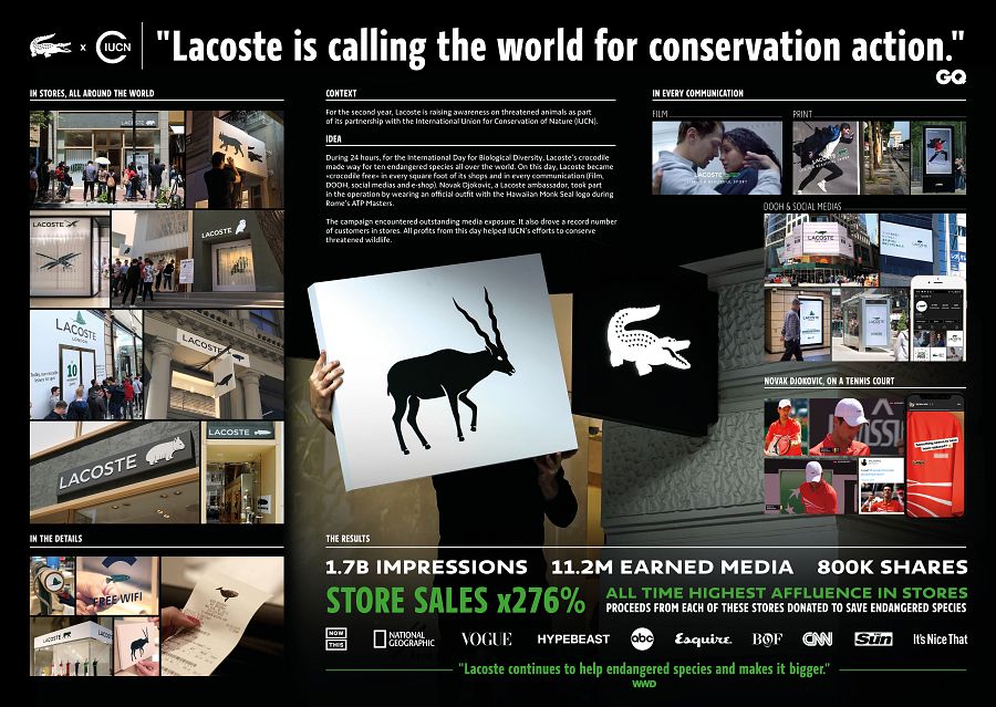 "Crocodile inside" de BETC Paris para Lacoste: Se trata de una campaña que nos narra una historia amorosa no exenta de contratiempos y de escenas en ambientaciones espectaculares, sin perder la elegancia y la identidad visual de esta marca.