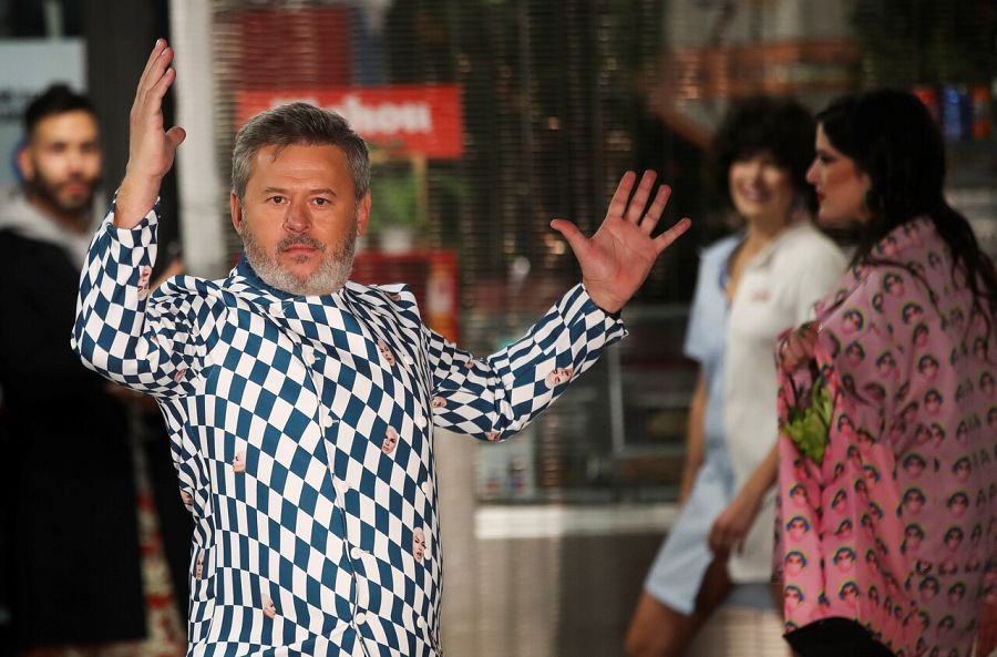 No ganó 'Maestros de la costura', pero arrasó en el taller. No ha llegado a la final de 'MasterChef Celebrity' pero ha arrasado en los fogones. Eduardo Navarrete es una estrella y ahora 'marida' sus dos universos, la moda y la cocina, en su nueva colección. Se titula Supermercados Navarrete y la presenta en un céntrico mercado de Madrid, rodeado de merluzas, callos, quesos y verduras. "Cuento una historia, la de los mercados de barrio de toda la vida. Este mercado está regentado por Terelu Campos, y está el chef del mercado, que es Miki Nadal, las clientas de toda la vida, que va a ser Belén López. "Se pasan más nervios en una prueba de expulsión", dicen a la vez Belén y Verónica Forqué.