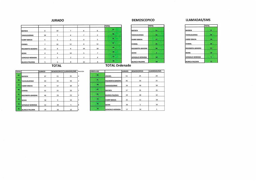 Por último, el jurado profesional -compuesto por Natalia Calderón, Miryam Benidited, Estefanía García, Felix Bergsson y Marvin Dietmann- emitió sus puntos de la siguiente forma: