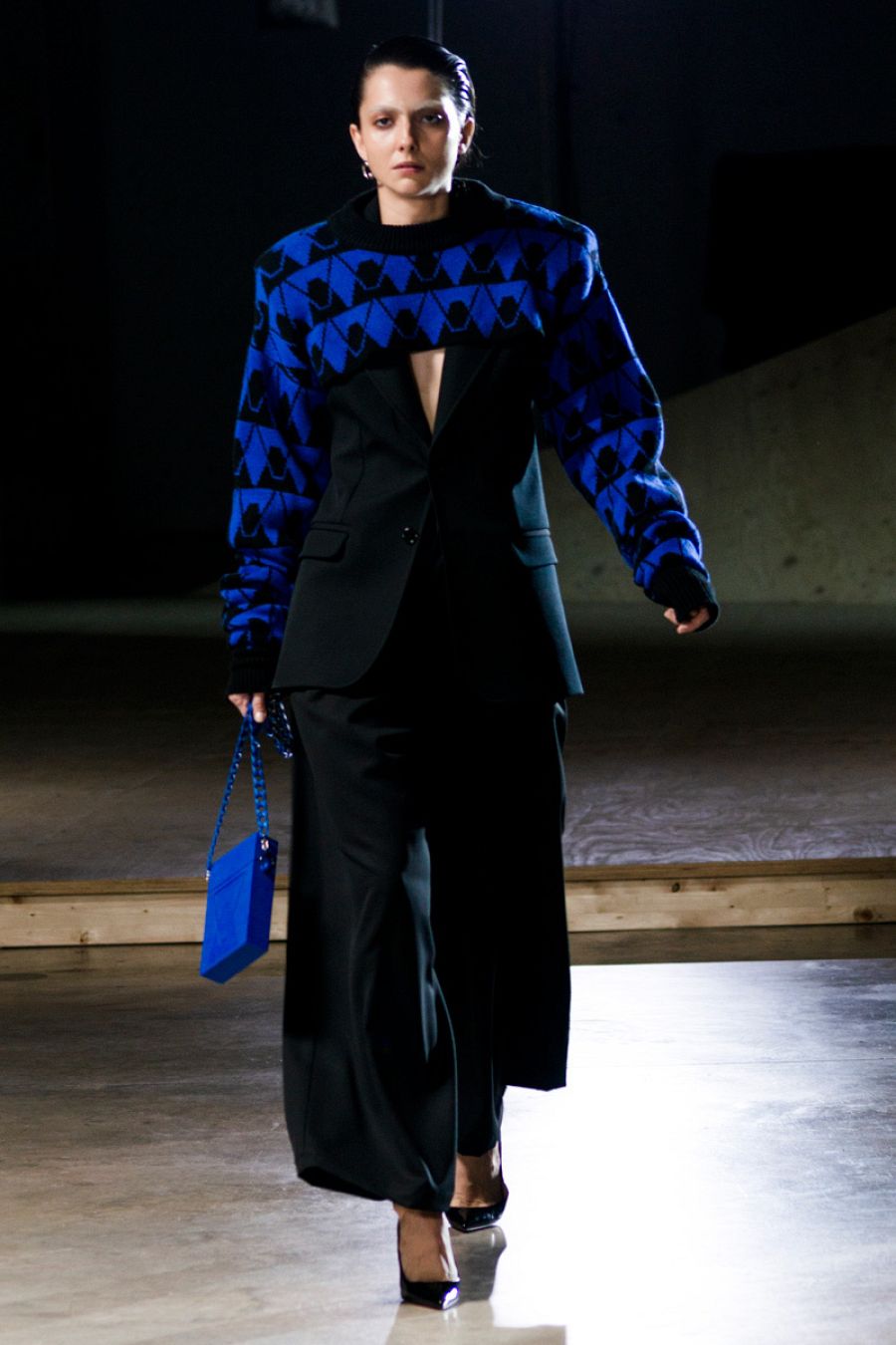 En su propuesta hacen un interesante trabajo de sastrería urbana, desgranando los códigos tradicionales de este oficio para remezclarlos después y crear piezas nuevas. "Las mangas toman protagonismo y se alargan, distorsionando el volumen corporal o salen del frontal en chaquetas, vestidos y camisas". Esta es una de las novedades, pero hay más. Se esmeran con los volúmenes, una de las claves de esta colección, y prestan especial atención a los tejidos. Lanas frías, sedas, tafetas, algodón, denim y lentejuelas conforman su bandera de texturas, en la que cobra importancia el punto. Los jerséis se reinventan acortando su forma: algunos solo cubren el cuello y los hombros, otros se alargan hasta convertirse en un vestido y luego hay otros que se superponen, jugando con el color, para lograr un look rompedor.