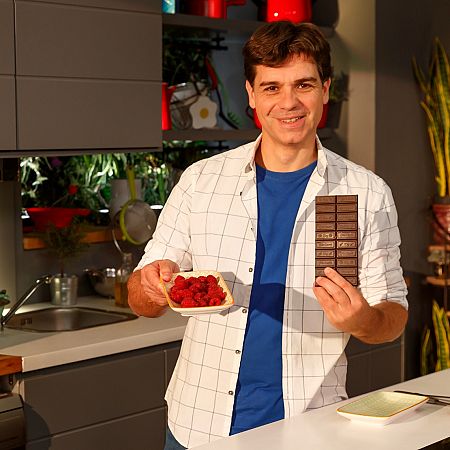 El cocinero Sergio Fernández nos enseña cómo hacer un postre fácil y muy vistoso con chocolate y frutos rojos. Una combinación perfecta de sabores que apasiona a los más golosos: coulant de chocolate y frambuesas.