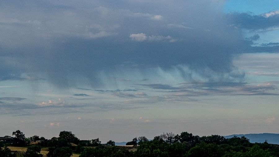 Aquest matí de dilluns hem tingut alguns núvols, provinents de les desfestes de les tempestes d'ahir a la tarda. D'aquests núvols hem vist caure algunes cortines de precipitació, però el que realment acabava caient a terra eren quatre gotes o pràcticament res de pluja. És el fenomen meteorològic conegut com a virga.