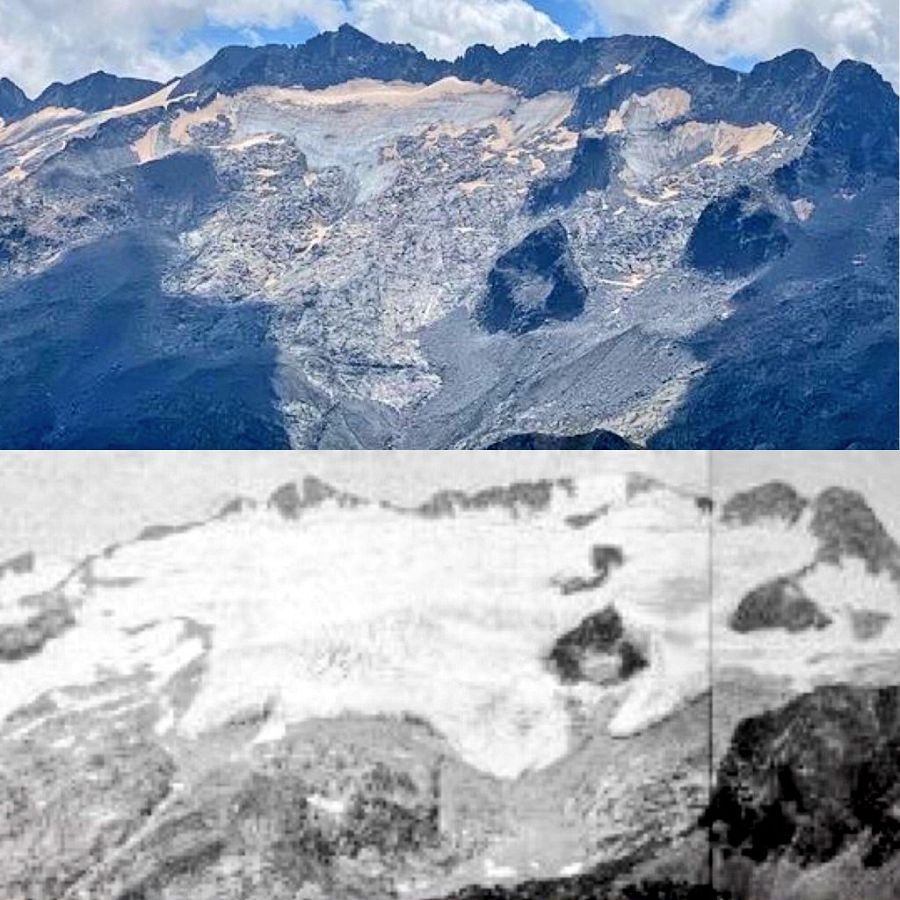 Glacera de l'Aneta (Maladeta) l'any 2021 i el 1857