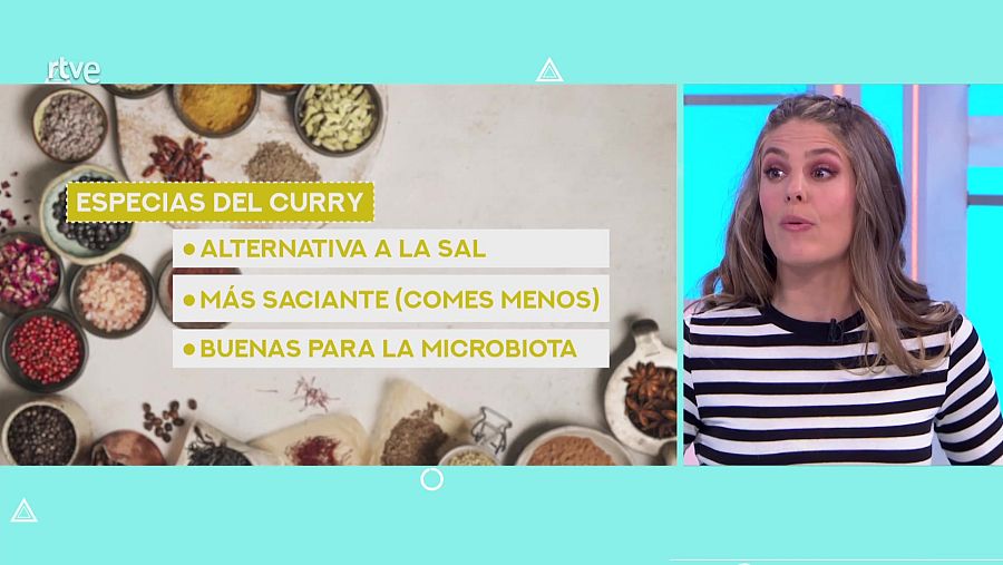 El curry es muy antioxidante, aunque si bien "no es el elixir de la juventud", su sabor potente es muy saciante y hara que comamos menos; también tiene especies carminativas que mejoran la digestion y los gases, y estimula la secrecion de jugos gástricos, algo que le sienta muy bien a nuestra microbiota. Además, al sustituirlo por la sal, se convierte en cardiosaluable.