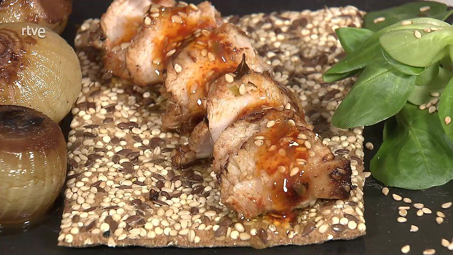 Receta de tosta de lomo adobado y cebollitas glaseadas
