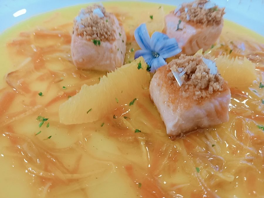 Paso a paso: una salsa emulsionada, un salmón en salsa de naranja y hasta un bizcocho de frutos secos