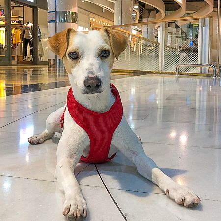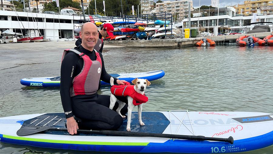 La mitad de los centros comerciales españoles aceptaba mascotas en el momento de escribir estas líneas. Entre los pioneros en aplicar esta política están los mallorquines. Pipper y Pablo aprovechan estas facilidades para comprar un chaleco flotador perruno y lanzarse al siguiente plan: practicar paddle surf.
