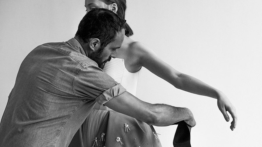 Se le nota contento y orgulloso de lo que ha hecho, de que lo ha logrado, de lo que es. "Está siendo un ejercicio muy bonito, porque me he dado cuenta de que me han pasado cosas muy bonitas en la vida". Insiste en que no se aferra a la nostalgia ni al pasado, que en su día a día mira solo al futuro y disfruta sopesando proyectos porque sigue dibujando, creando. "Lo que hago ahora es una evolución natural, pero sí, vas a notar un cambio", dice, y revela que le siguen llegando ofertas de trabajo. "Tengo varias, pero decidirme por una de ellas implica cambiar de vida, de ciudad, de idioma. Tengo que estar muy seguro antes de aceptar", dice sobre esta nueva etapa profesional, la cuarta tras empezar con Luz Díaz, montar su propia firma y diseñar para Delpozo.