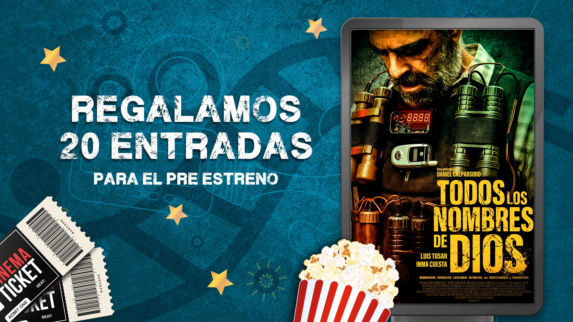 RTVE Play Somos Cine regala 20 entradas dobles para asistir al preestreno de Todos los nombres de Dios en Madrid o Barcelona. Será el próximo 14 de septiembre, a las 20.00 horas, en los cines Kinépolis (en Madrid) y Boliche (en Barcelona). A continuación, te explicamos cómo convertirte en una de las primeras personas en ver la película. Todos los nombres de Dios es un trepidante thriller de acción con el inconfundible sello de Daniel Calparsoro en la dirección, protagonizado por Luis Tosar.