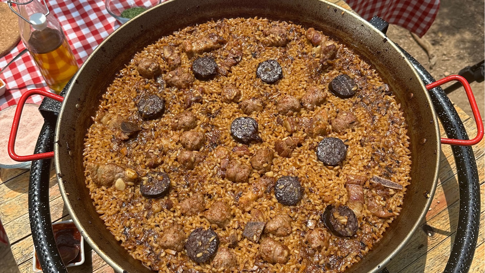 La chef charla con ellas intentando descubrir su lado musical. Así, les pregunta por su canción favorita, por los momentos más locos vividos encima de un escenario o cómo reaccionan ante cualquier imprevisto cuando salen de gira. Mientras, el arroz va cogiendo forma y María Lo va añadiendo poco a poco todos los ingredientes restantes: las costillas, la butifarra y la morcilla. Desde luego, hay pocas comidas más apetecibles para comer con buen tiempo en el campo.