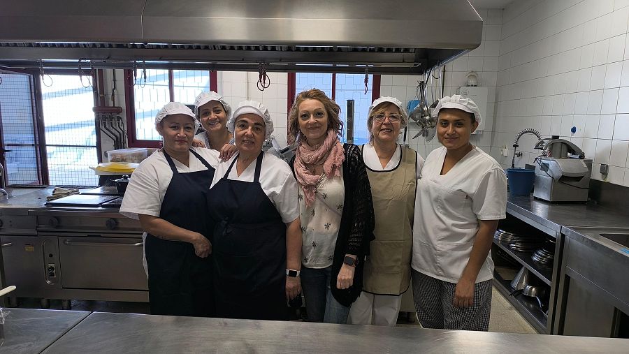 La jefa de cocina y el resto de su equipo del CEIP Padre Poveda de Madrid v
